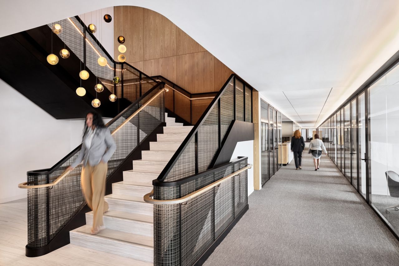 When Kirkland & Ellis relocated its Chicago headquarters to Salesforce Tower, the design team envisioned a network of feature stairs that were sculptural, refined, and seamless. Synergi was tasked with delivering 20 custom interconnecting stairs that combined ornamental metals, curved mesh, and a timeless, non-industrial aesthetic.