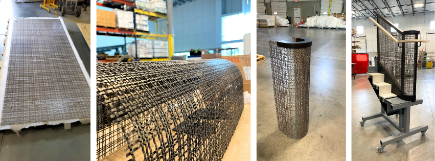 The most complex task was rolling the antique bronze–coated stainless steel mesh to the tight radii demanded by the design: