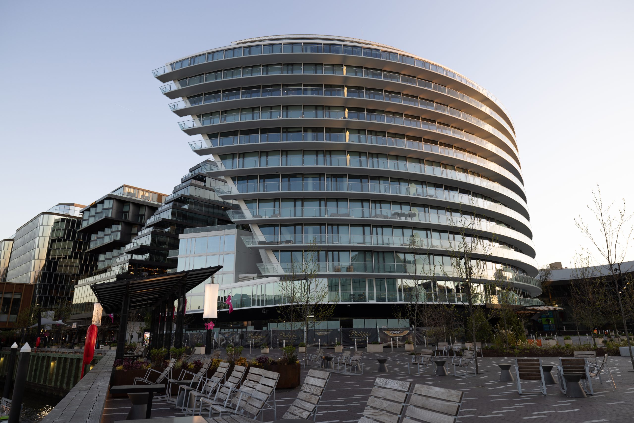 Amaris is a mixed-use residential building designed by the late Rafael Viñoly Architects with a unique form that evokes water-like movement and maximizes views, allows daylight deep within each residential unit, and creates a recognizable and distinctive form along the Potomac River waterfront.