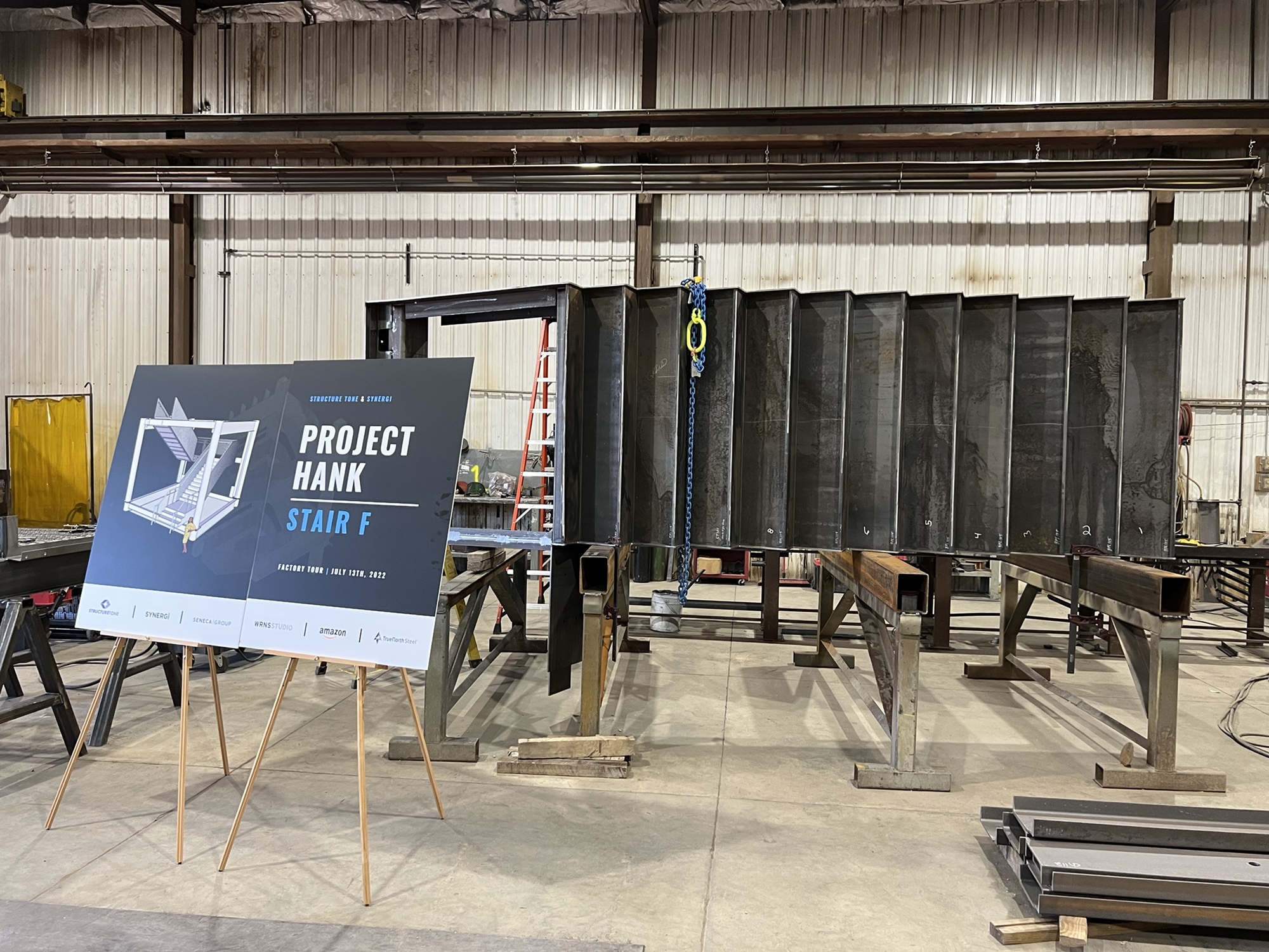 Amazon has opened the doors to its newest office, Hank, in Midtown Manhattan. Previously the home of department store Lord & Taylor, the 500,000 SF has undergone a complete renovation. Synergi has collaborated with WRNS through the design assist process to design 14 turnkey feature stairs within the predetermined GMP starting the collaboration at the design development stage. The striking stair was designed to be wide enough to accommodate a constant stream of people, with perforated metal guardrails to filter natural light and a range of finishes, including concrete treads, polished millwork cladding, and integrated lighting. Synergi achieved impressive cost savings by addressing logistical challenges and redesigning the stair modules through the design-assist process.