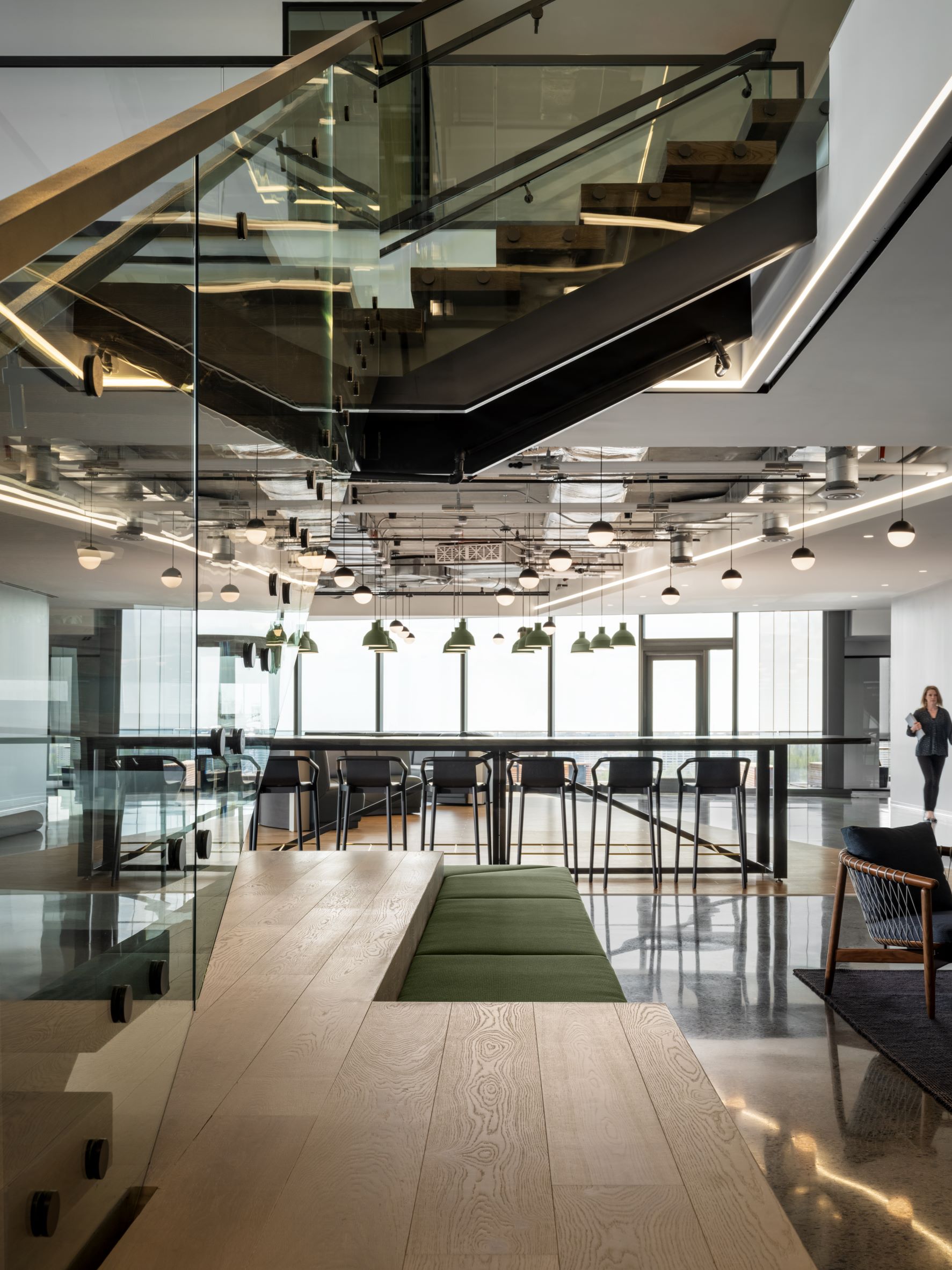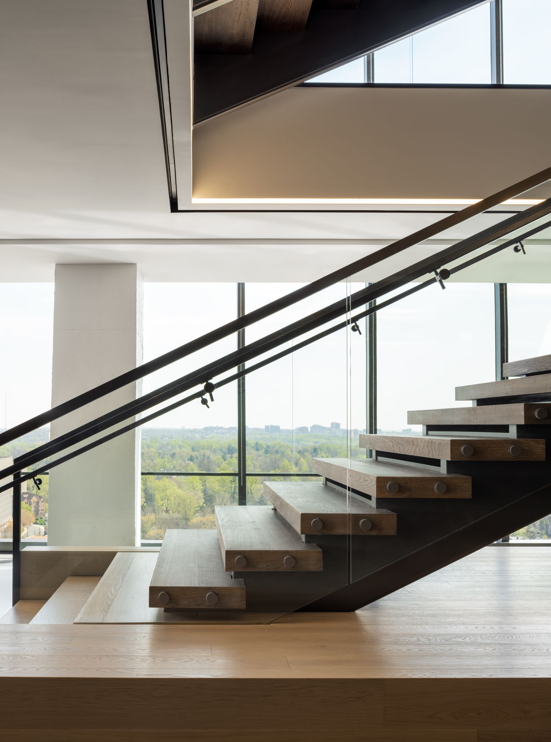 Synergi has designed, built, and installed two feature stairs, along with glass guardrails and handrails, for the Washington, D.C. headquarters of sustainable energy giant, Enviva. Located in Bethesda's thriving downtown commercial hub, Enviva employees enjoy views stretching all the way to the National Mall. The project was built with an open concept in mind and included unique design features with open, exposed ceiling concepts and wood flooring that extended to the walls and ceilings.