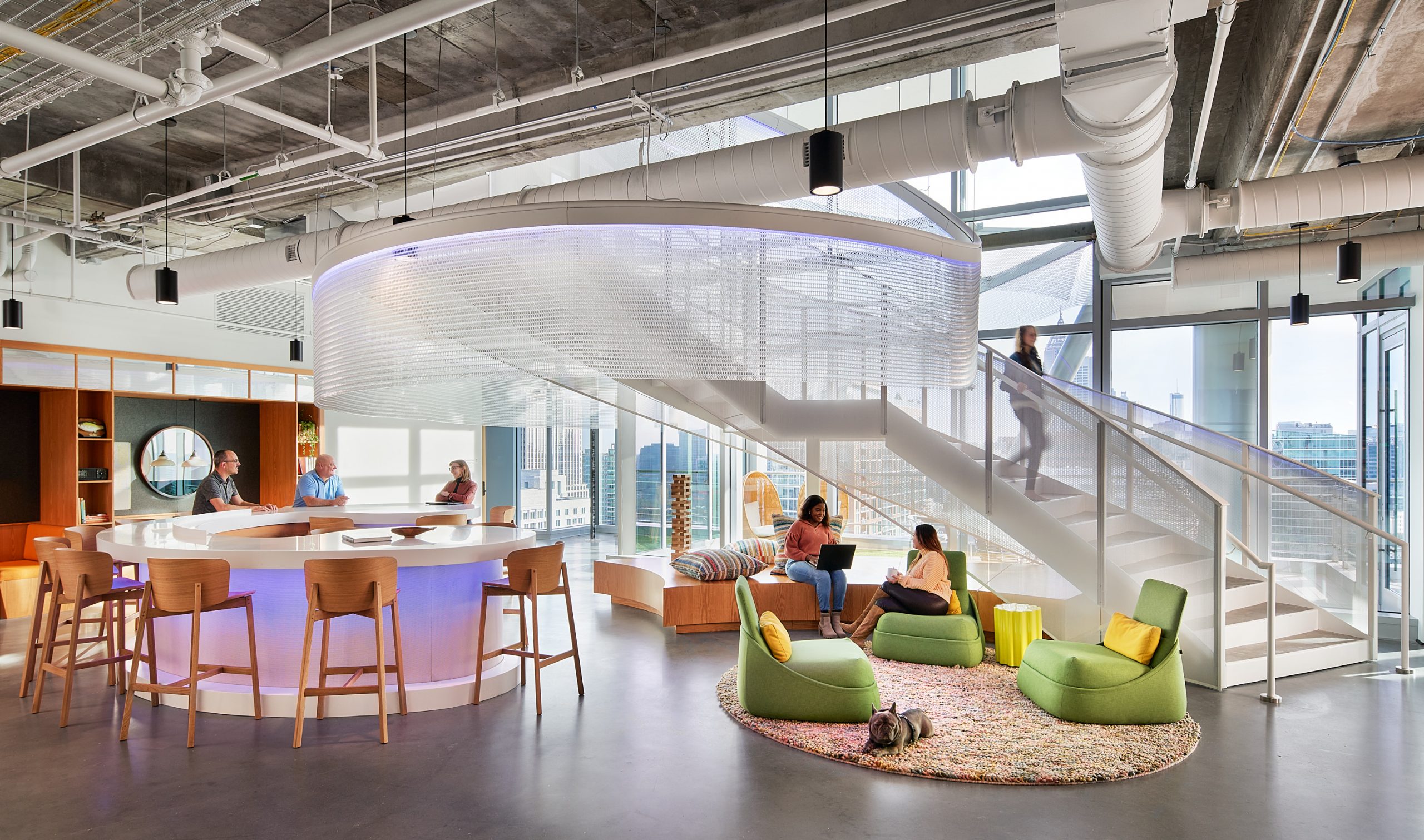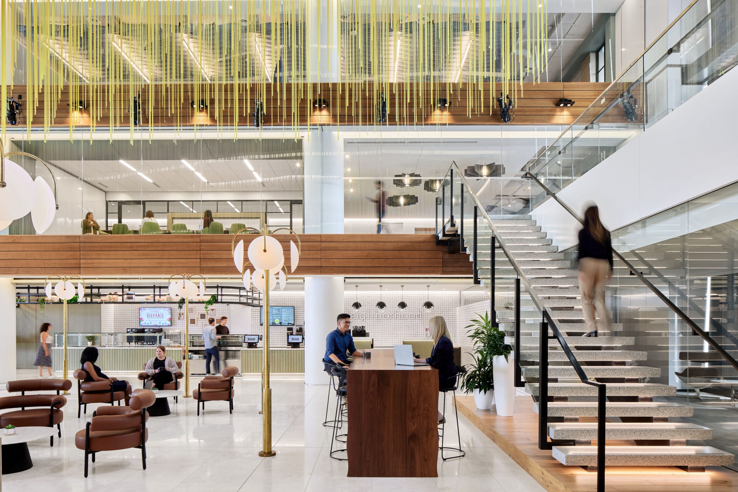 One of Synergi’s most visually striking specialties, the feature stair serves both design and function. Key to the vertical transportation within a building, these stairs combine an exposed metal structure, decorative metal elements, and any number of other material finishes. Vertical circulation in buildings promotes a healthy workplace environment and encourages collaborative collisions between tenants through conversations on the communicating stairs they may not have happened otherwise. These key themes make the implementation of monumental or communicating stairs imperative for designers.